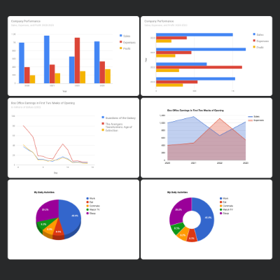 This project shows how to use Google charts and make them parametric. There are wrapper classes with the main parameters. Each graph instance has a node connected with graph data.