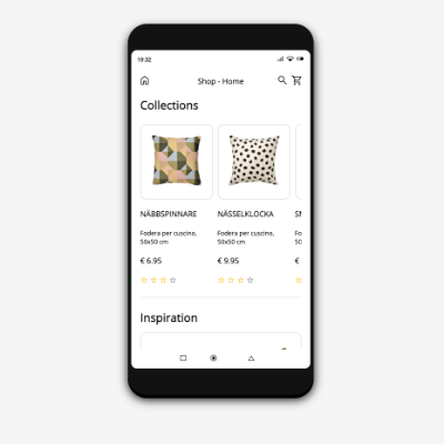 The application contains 3 views: "home-view", "product-view" and "cart-view".